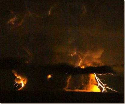 1:43 pm ET Incredible volcano lightning photos: These are pictures taken on March 28 of Alaska's Mount Redoubt volcanic eruption. The volcano has been erupting for several days now but has recently evolved into a different eruption pattern.